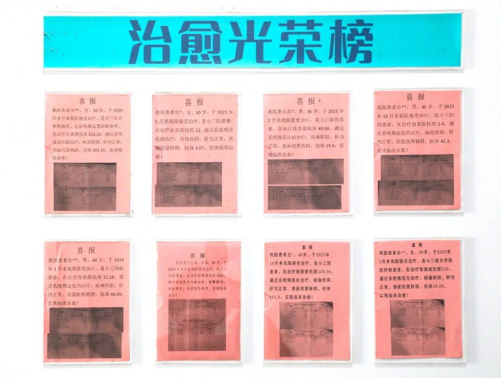 2024年3月,医院正式启动乙肝临床治愈门诊,7月,国家卫生健康委医院管理研究所公布了“乙肝临床治愈门诊规范化建设和能力提升项目”入选名单,我院成功入选172家项目培育单位之一。截至目前,共有8名患者实现乙肝临床治愈。