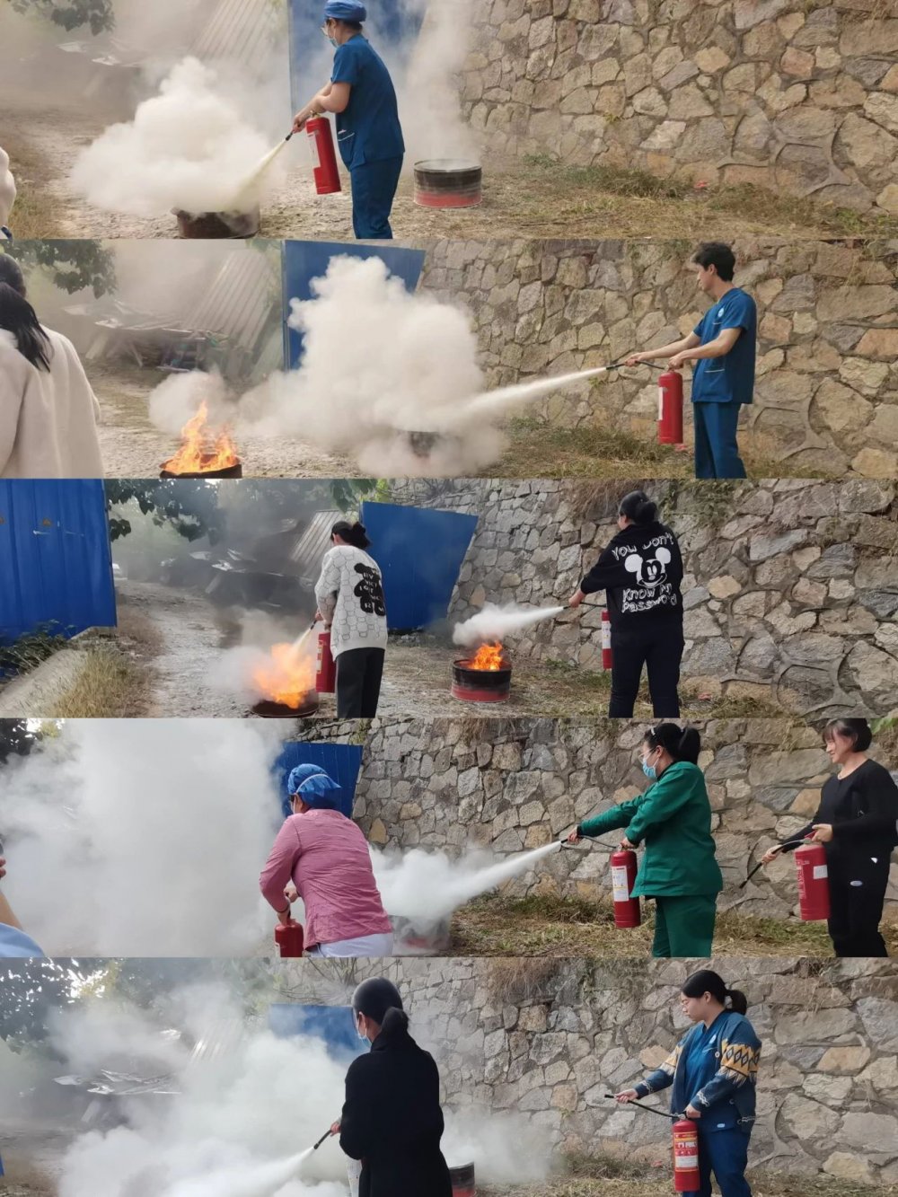 培训结束后,在院内模拟开展了油盆灭火演练活动。演练中,杨教员带头示范,手把手教授灭火技巧。参加培训的职工轮番上阵学习准确灭火,成功将油盆的火扑灭。本次培训和演练进一步增强了大家的消防安全意识,强化了防火和自救知识,提高了火灾的应急处理和现场应对能力。