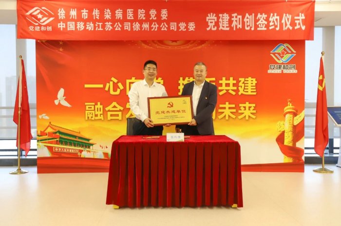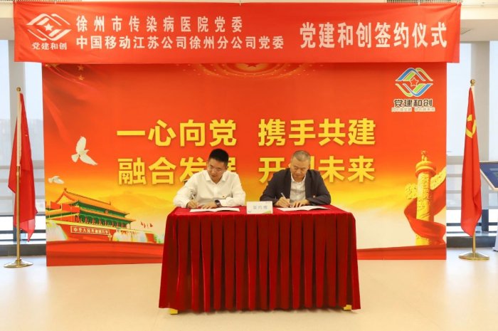 在签约仪式上,院党委书记王为民与徐州移动党委书记、总经理徐星宇共同签署了双方“党建和创”协议。