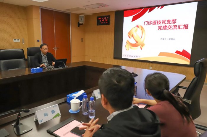 医院临床1党支部书记刘绍龙、医技党支部书记张启全和徐州移动云龙分公司支部书记孙浩分别就党建相关工作进行交流研讨。