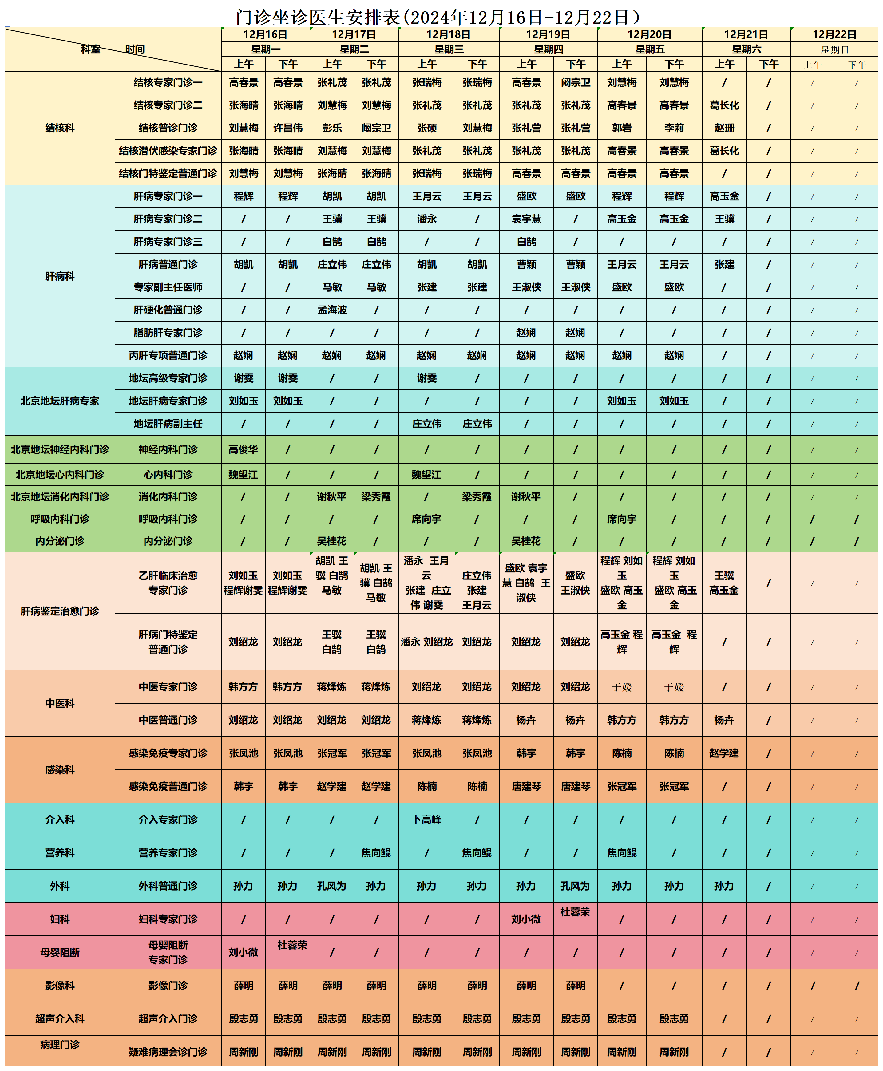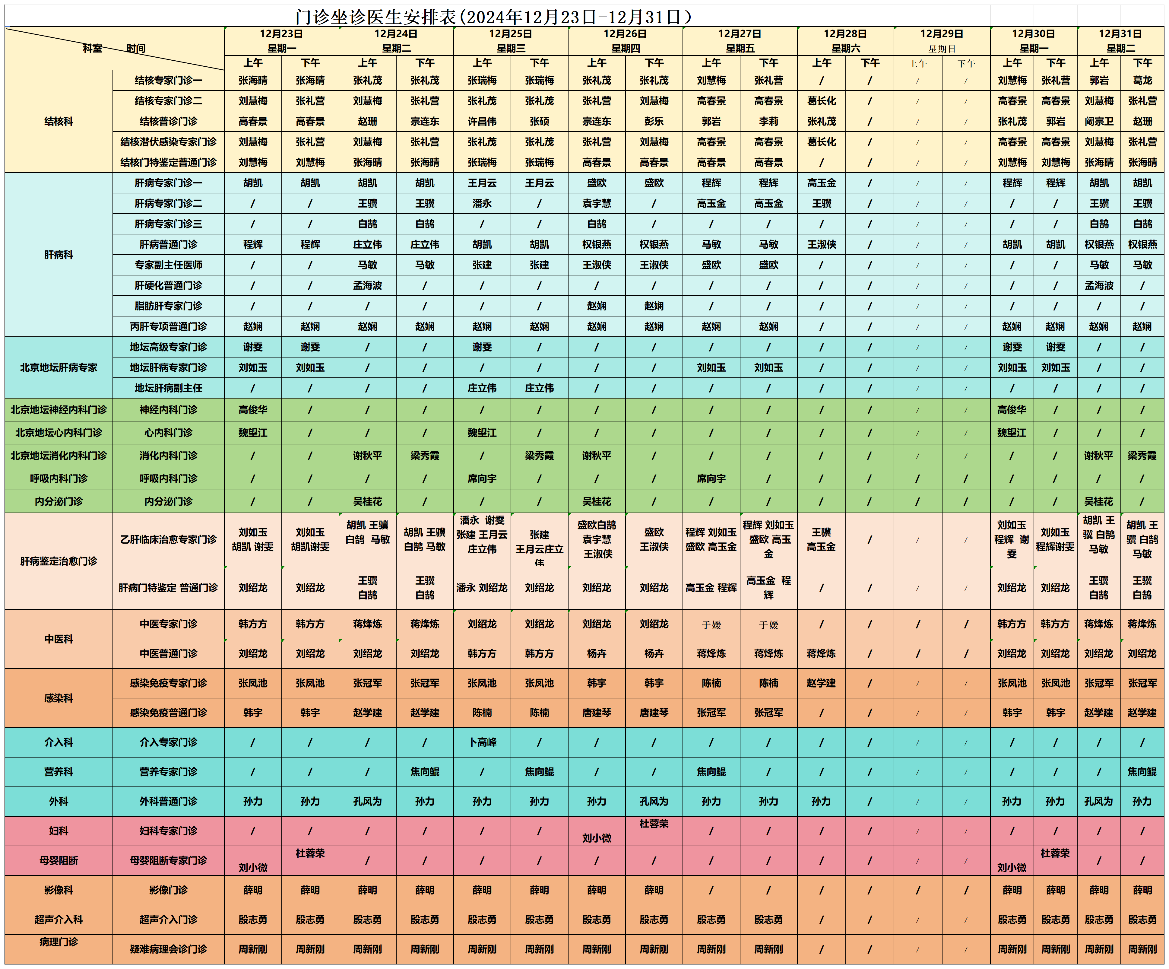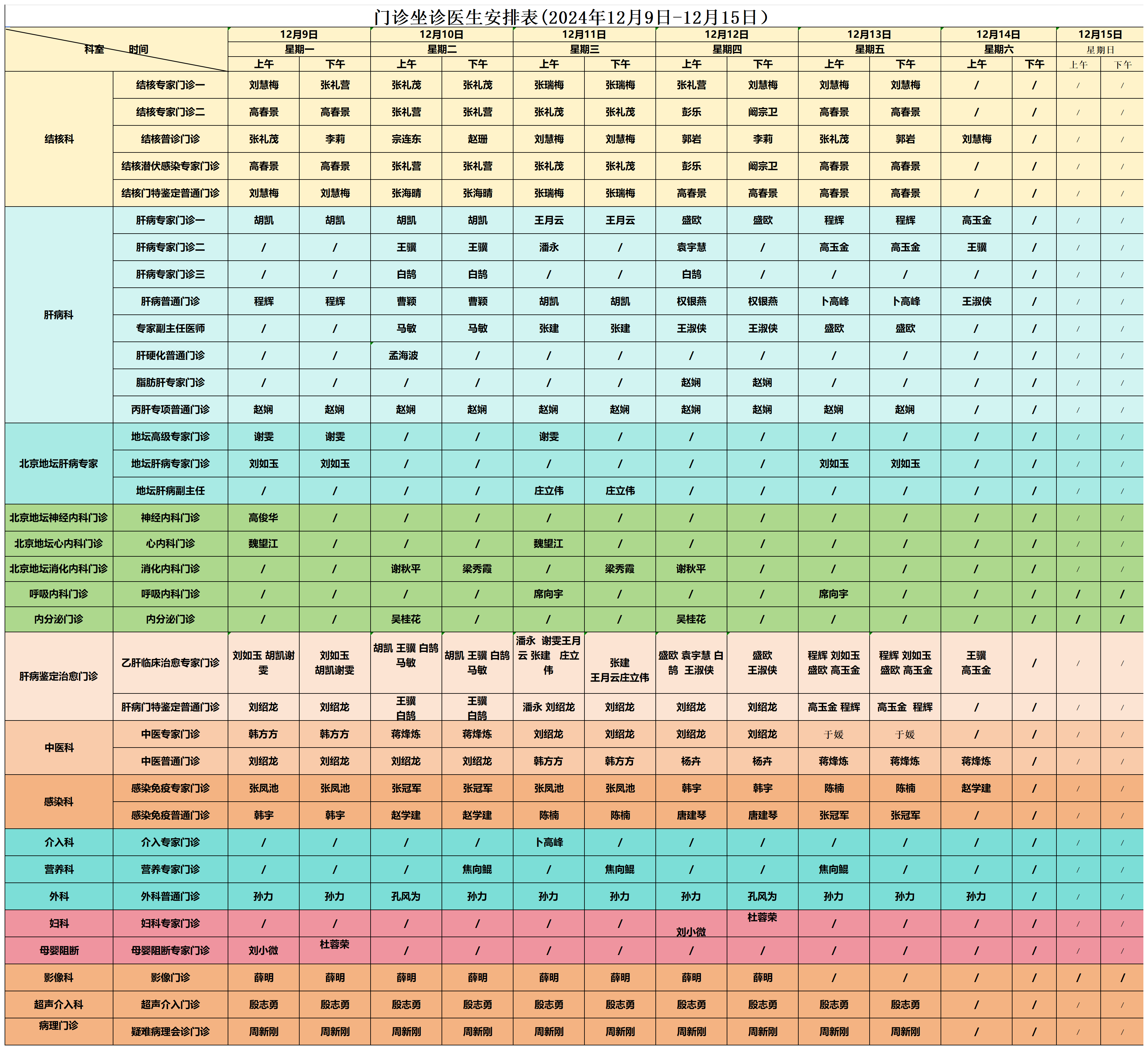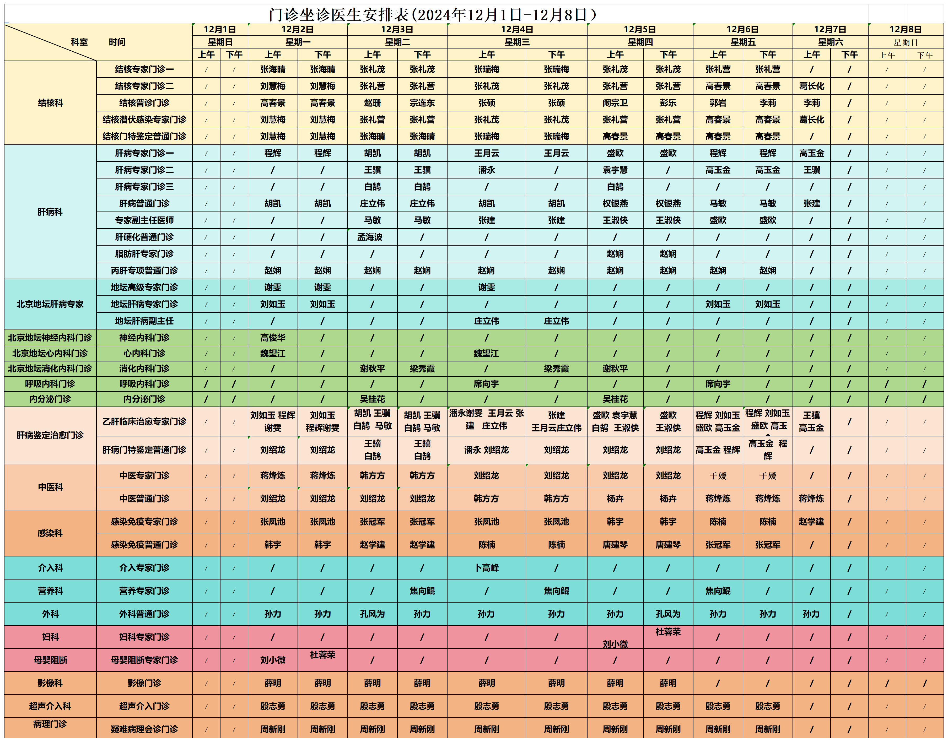 徐州市第七人民医院门诊坐诊信息一览表(12月1日-12月31日)
