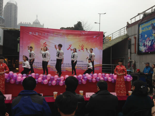 在市卫计委的领导下,徐州市传染病医院携手徐州市医学院团委开展了“久久防艾爱心义演”。通过话剧演出、诗歌朗诵、宣讲、发放宣传资料以及专家义诊等形式,为广大市民发放红丝带,提升防艾意识。