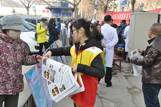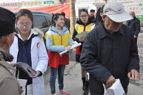 2016年12月1日,是第29个“世界艾滋病日”,为让广大群众科学认识艾滋病,正确对待艾滋病,营造“携手抗艾、重在预防”的社会氛围,由徐州医科大学公共卫生学院团委主办,徐州市疾病预防控制中心、徐州市云龙区疾病预防控制中心、徐州市云龙区计划生育协会、徐州市传染病医院、徐州市京城皮肤病医院、徐州市黄山社区卫生服务中心协办的艾滋病宣传义诊活动在云龙区黄山社区举办。