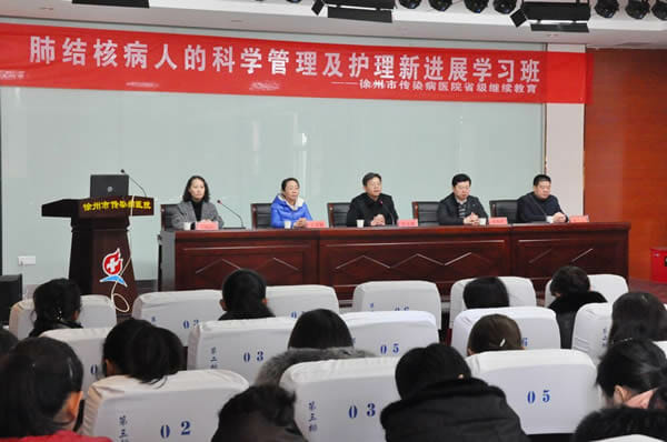 12月4日,由徐州市传染病医院主办的省级继续教育项目“肺结核病人的科学管理及护理新进展”学习班在传染病医院新会议室如期举行,市级继续教育项目“新形势下传染病护理新进展”学习班也同时举办。来自全省传染病医院及市各级医院的护士长、护理骨干共计100余人参加了本次培训。张克球院长、刘加彬书记、王春颖及姚均伟副院长均出席了开幕式,结核科科护士长彭韫丽主持开幕式,张克球院长致开幕辞。开幕式上,张院长首先向参会的各位代表表示热烈的欢迎,然后向大家简单介绍了医院的基本概况及发展动向,充分肯定了近期护理工作所取得的成绩,并对举办此次培训班的重要性和必要性表示认可,同时对市传染病医院的护理工作提出了新的期望与要求。