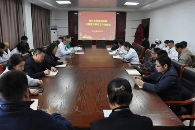 12月9日下午,徐州市传染病医院在行政办公楼三楼会议室召开了加强意识形态工作专题会,院党委书记王为民对意识形态工作提出要求,党委办公室、组织人事科科长孙庆对党委意识形态工作责任制2019年度任务清单进行任务分解,宣传科科长吴启霞对医院党委(支部)及各部门网络意识形态工作责任制责任清单进行部署,全体领导班子成员、各支部书记、职能科室负责人及临床科主任40余人参加会议。