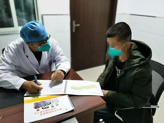 为了使此项活动真正落地,前期我们做了大量的基础工作,也制订了系列实施方案。根据方案开展的活动有:一对一咨询、小组活动及同伴支持教育。一对一咨询主要包括:开展耐多药结核病患者的诊前咨询工作;开展耐多药结核病患者的诊断结果告知;治疗前准备;出院前咨询;复诊咨询。小组活动主要包括:运用工具书向患者讲解痰标本留取的目的、意义及留痰的方法;运用工具书向患者讲解药物服用的注意事项及药物的不良反应及处理;运用各种方式向患者讲解普通结核与耐药结核的区别,结核的传播途径,咳嗽礼仪、医院及家庭感控相关知识及饮食相关知识等;小组活动时适当提供水果、点心及其他小礼物吸引病人积极参与小组活动。同时,利用同伴支持者进行教育,帮助病人树立战胜疾病的信心。