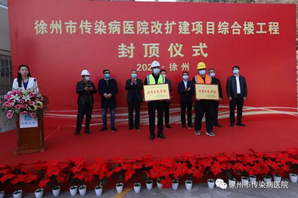 征程乍起,满目葱茏。12月22日,在寒风凛冽的项目施工现场,中建三局徐州市传染病医院改扩建项目综合楼工程举行封顶仪式,徐州市政府相关部门、徐州市传染病医院代表方及其他领导嘉宾、项目管理人员等出席活动。