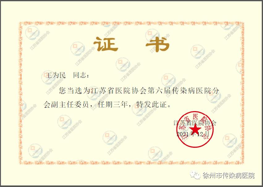 会间,传染病医院分会进行换届选举,我院党委书记王为民当选为江苏省医院协会第六届传染病医院分会副主任委员。并作了题为《党建引领 责任担当----基层党建在重大疫情应急救治体系中发挥的作用》交流发言。