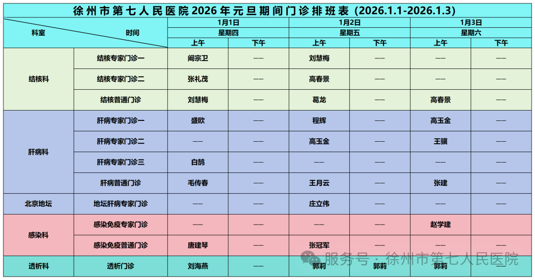1月1-3日门诊排班