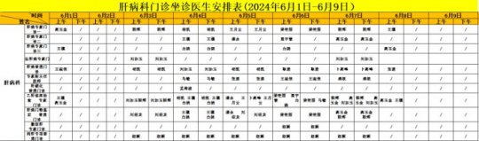 6月份门诊各科室排班表(2024年6月1日-6月9日)