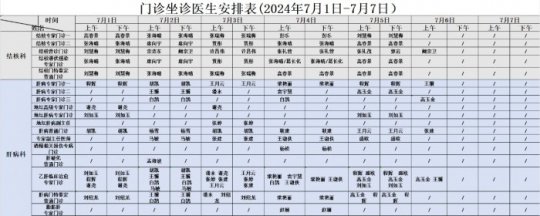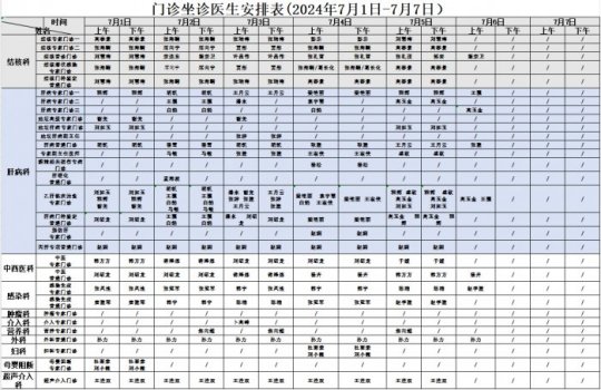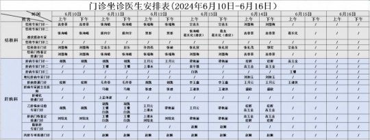 6月份门诊各科室排班表(2024年6月10日-6月30日)