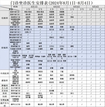 门诊坐诊医生安排表(2024年3月25日-3月31日)