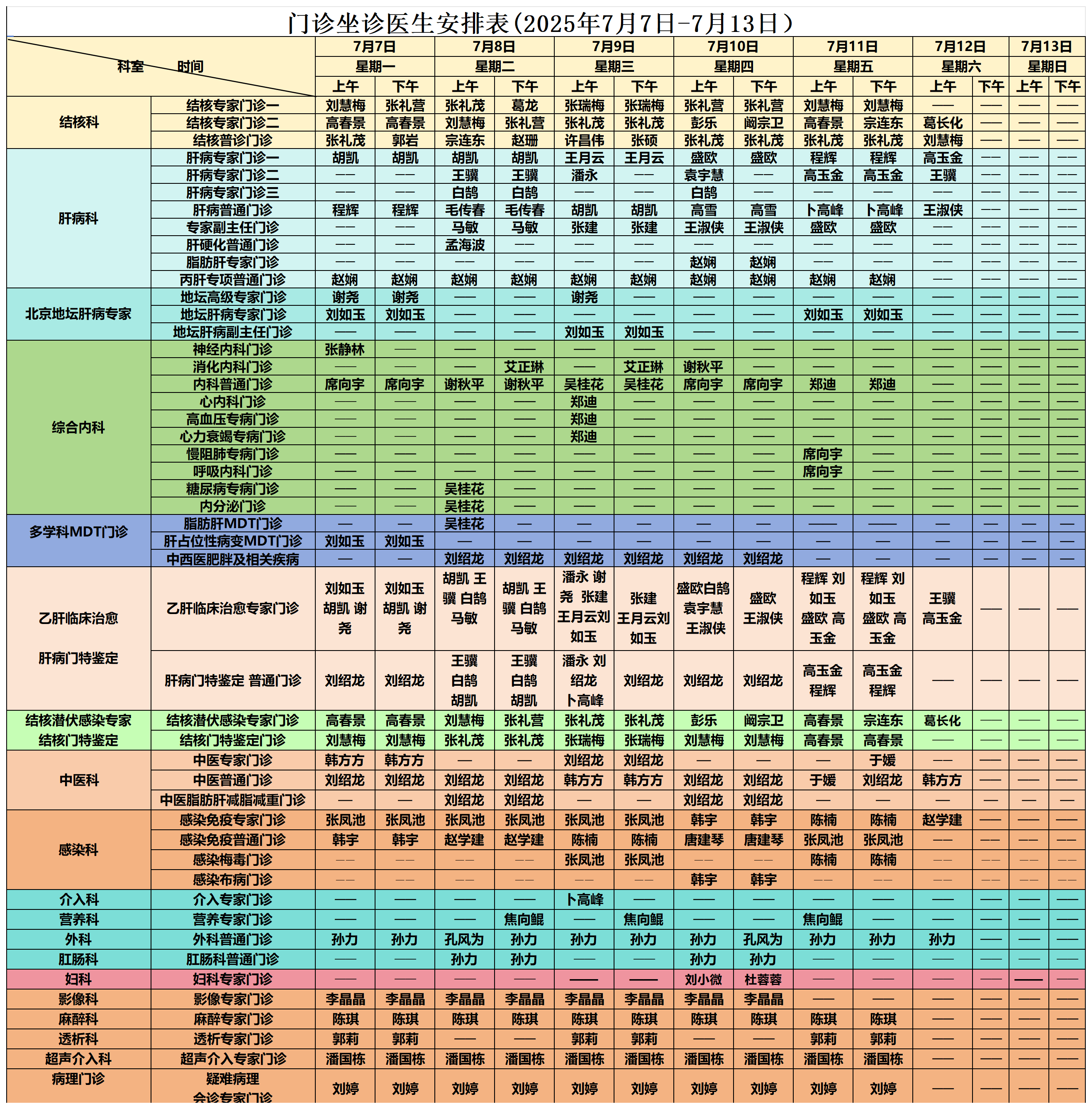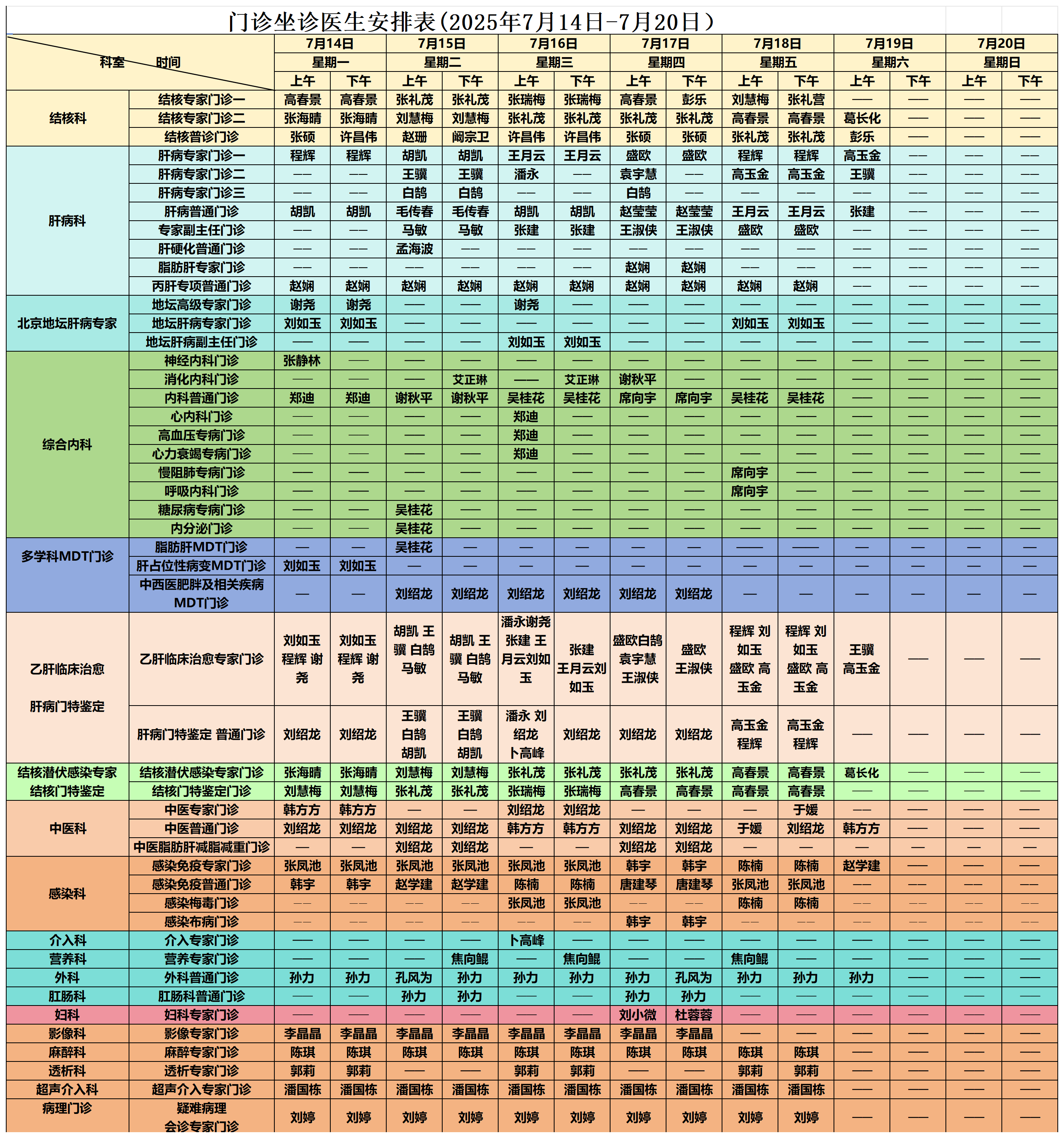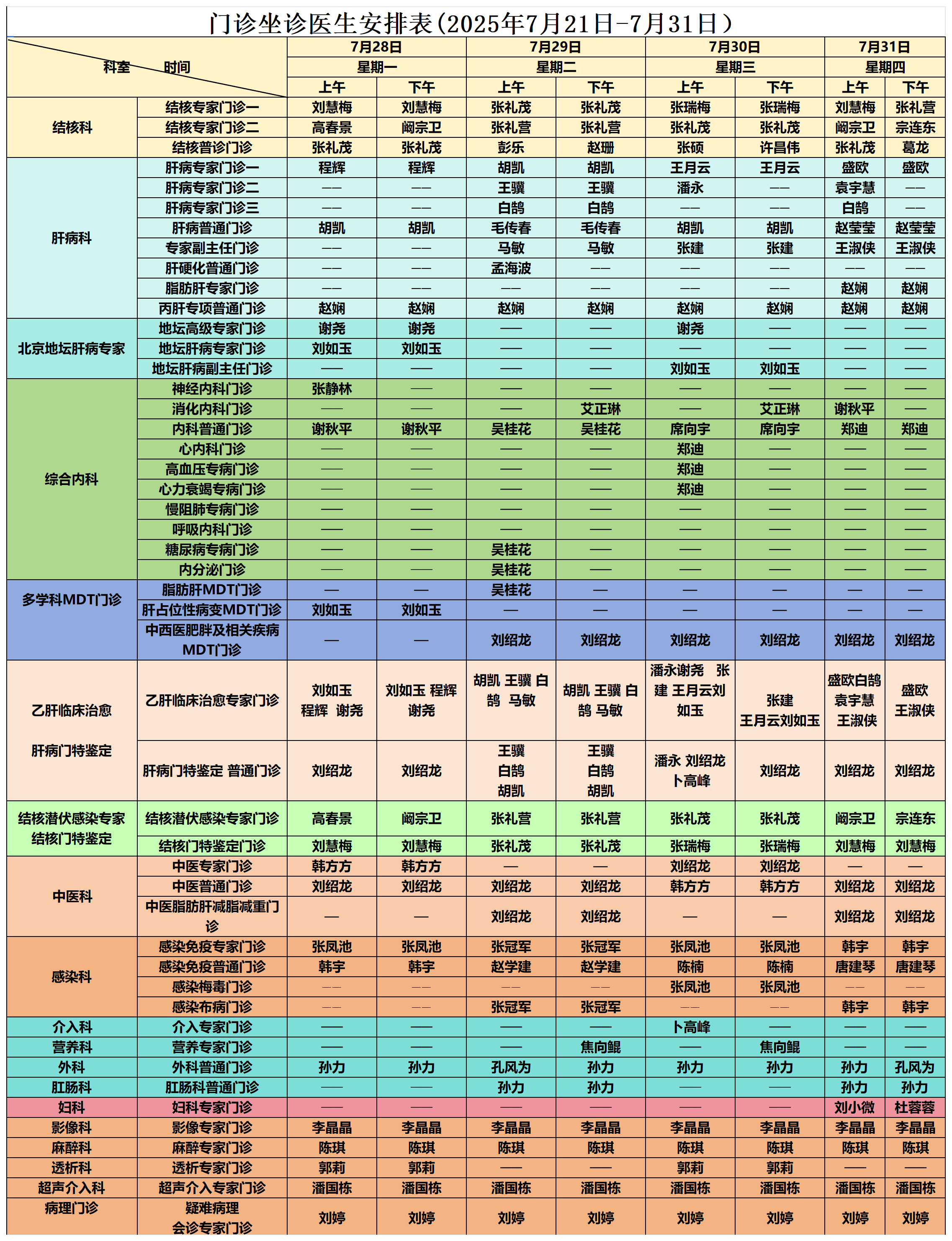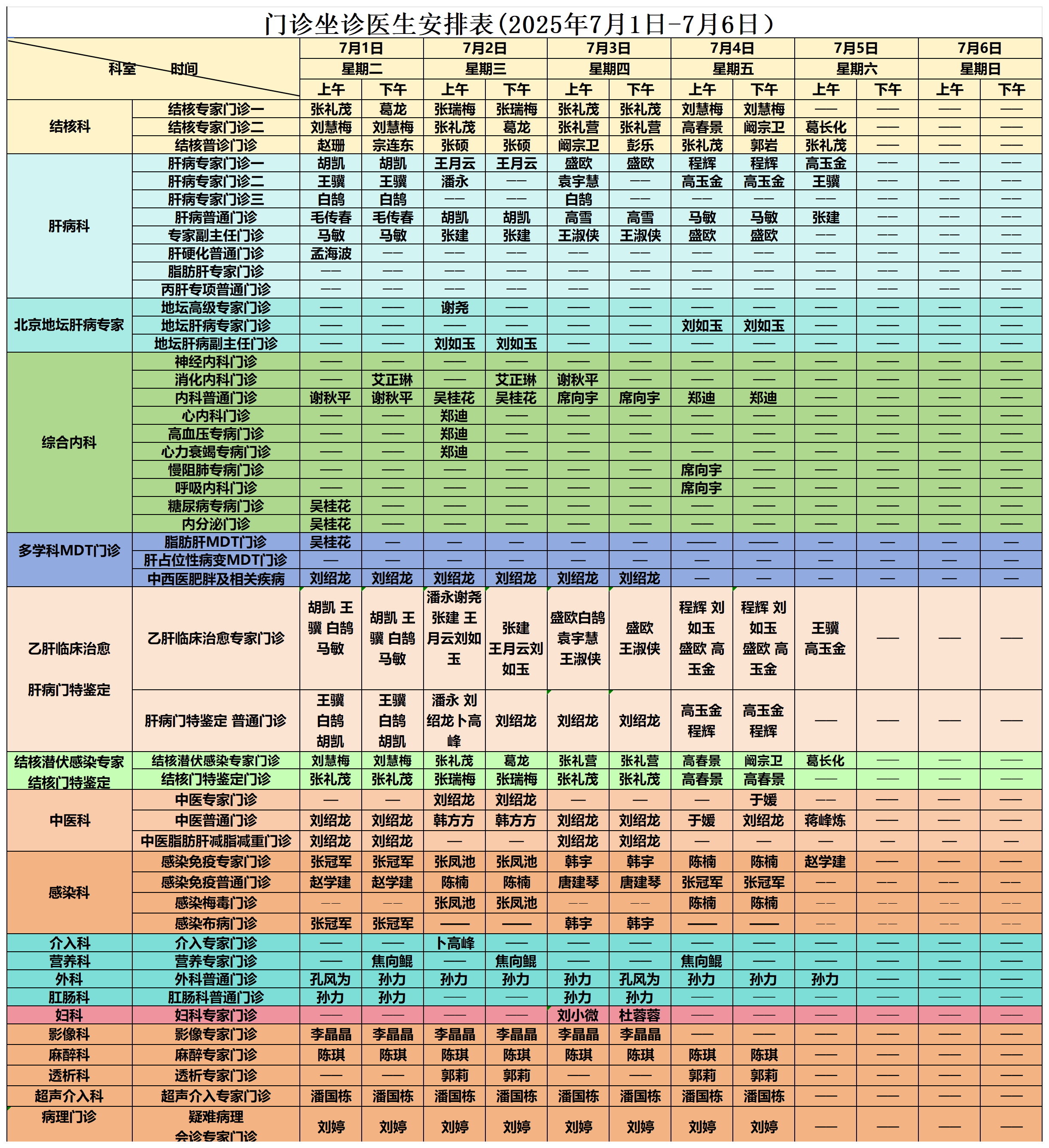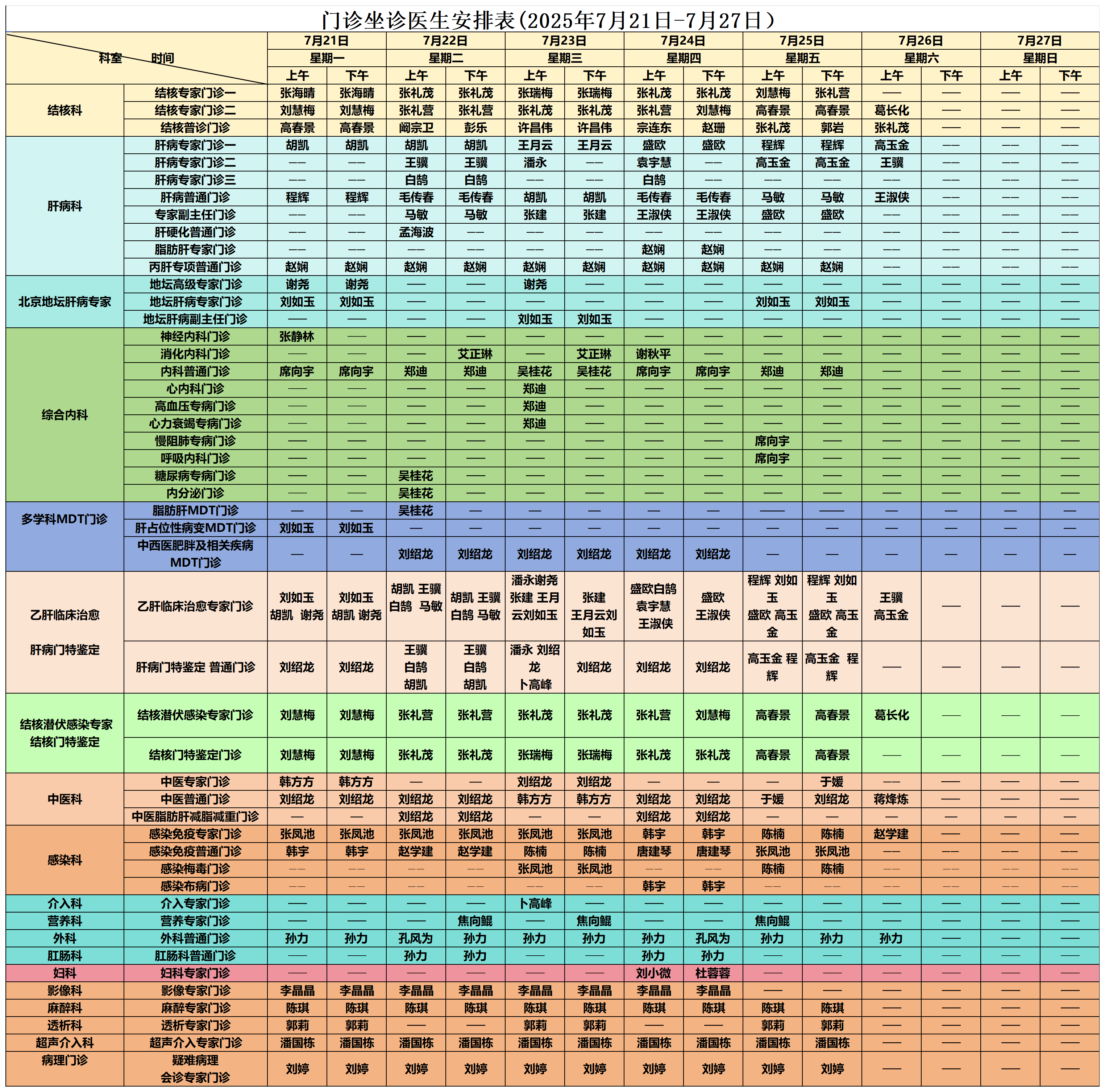 具体坐诊专家以当日出诊为准,如有临时调整,敬请理解!