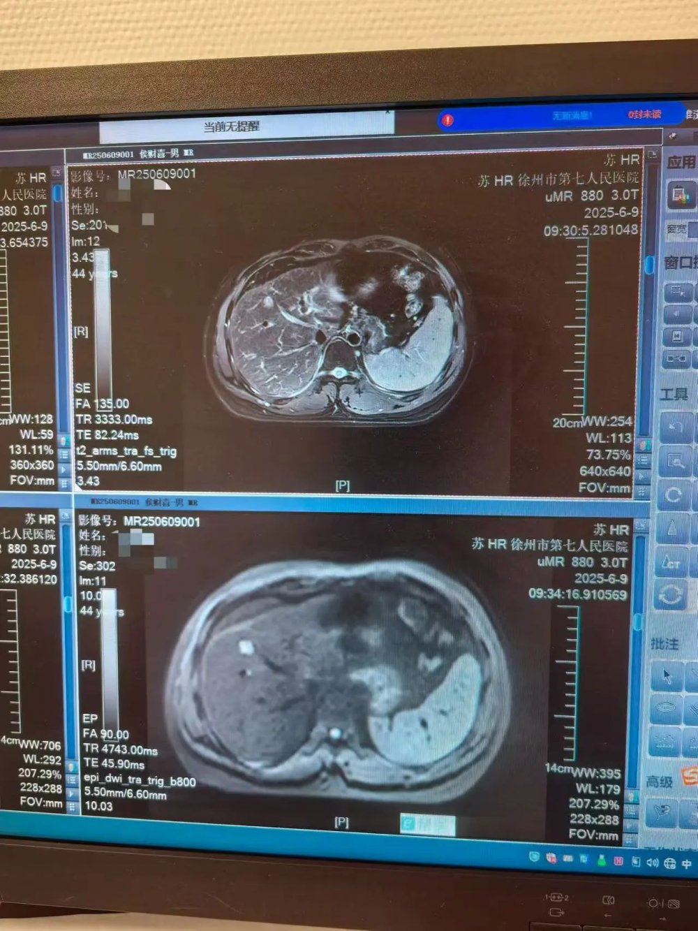 一个月前,北京地坛医院徐州医院(徐州七院)外科在总院北京地坛医院普外科团队精心指导下,成功为一名45岁肝癌患者实施超声引导下肝癌微波消融术(MWA),手术过程顺利。近日,患者复查上腹部增强CT,提示消融病灶完全液化坏死、周围无残留病灶,手术效果良好,患者对治疗过程非常满意。