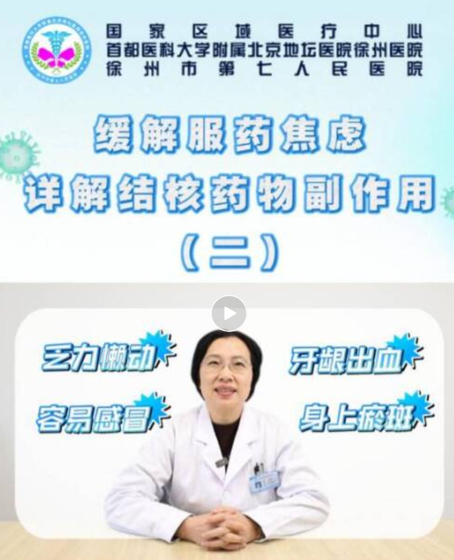 抗结核药物就像一支“特种部队”,在消灭结核菌时,会产生一些副作用。但绝大多数副作用都是可以通过医生的健康宣教和规律复查而可防可控的。今天,我们请北京地坛医院徐州医院(徐州七院)结核三科主任刘慧梅聊一聊结核药物副作用之关节疼痛、神经系统反应和骨髓抑制现象。
