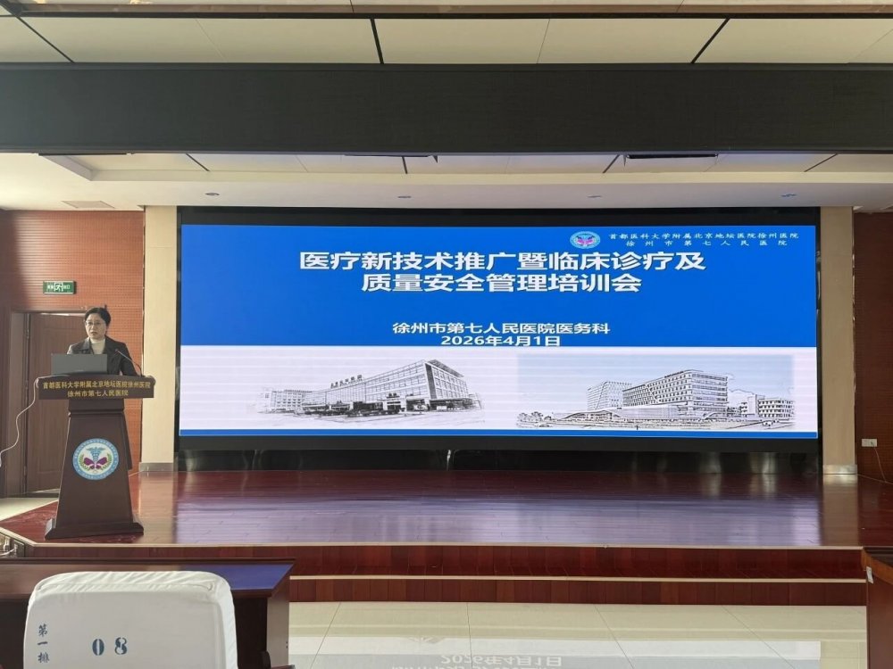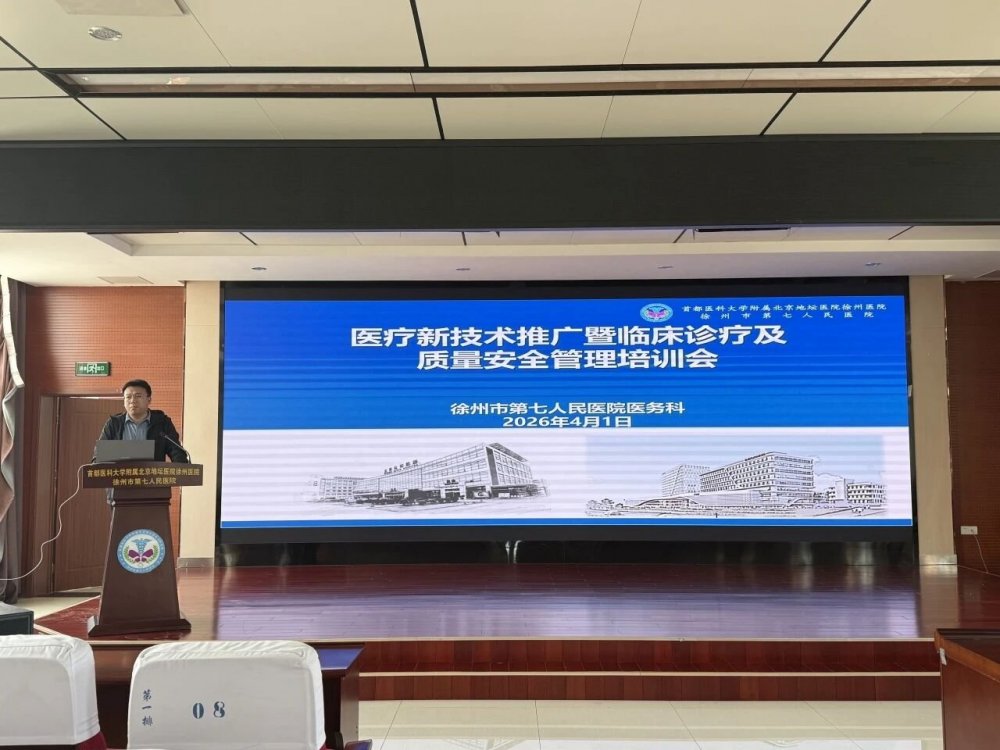 为持续深化国家区域医疗中心建设内涵,全面提升临床诊疗水平与质量安全管理能力,切实筑牢患者就医安全防线,4 月 1 日,北京地坛医院徐州医院(徐州七院)举办医疗新技术推广暨临床诊疗及质量安全管理专题培训会。会议由医务科科长王邺珩主持,副院长张海晴出席并部署重点工作,全院医护人员参加,以学促干强本领,凝心聚力提服务。