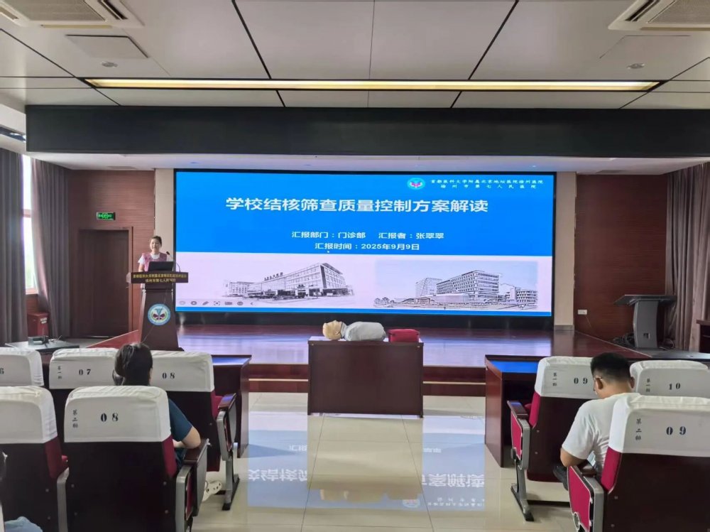 正值开学季,为切实做好学校新生结核筛查工作,统一筛查标准、规范医务人员操作流程、强化应急处置能力,保障师生健康安全,9月9日,北京地坛医院徐州医院(徐州七院)医务科联合外联、门诊、护理部、结核中心等部门召开结核病筛查专题培训会。