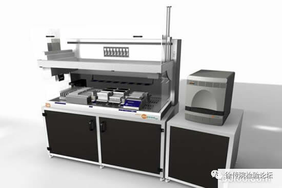 现在,为了改善HIV RNA的检测质量,我院又引进了一套世界领先的雅培Abbott m2000 system。雅培m2000系统是由雅培加拿大公司研发成功的,旨在用于医学诊断实验室样品的自动提取,可以和m2000 rt联用。目前可以应用的检测有RT HIV-1, RT HBV, RT HCV 和RT CT/NG。该仪器主要由两个机械臂和八个单道移液器构成,将样品放入样品管中后,仪器就可以自动工作,利用磁珠法进行核酸(DNA/RNA)提取。在样品提取完成后,仪器还可以进行PCR试剂混合步骤。基本上没有手工的操作步骤,只需要把样本放入仪器,把PCR试剂放入仪器,最后把混合好的96孔板拿到m2000 rt当中,进行后续的反应。