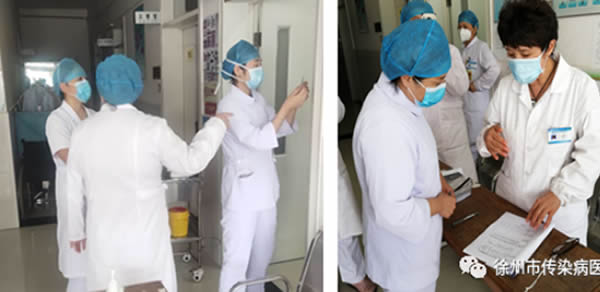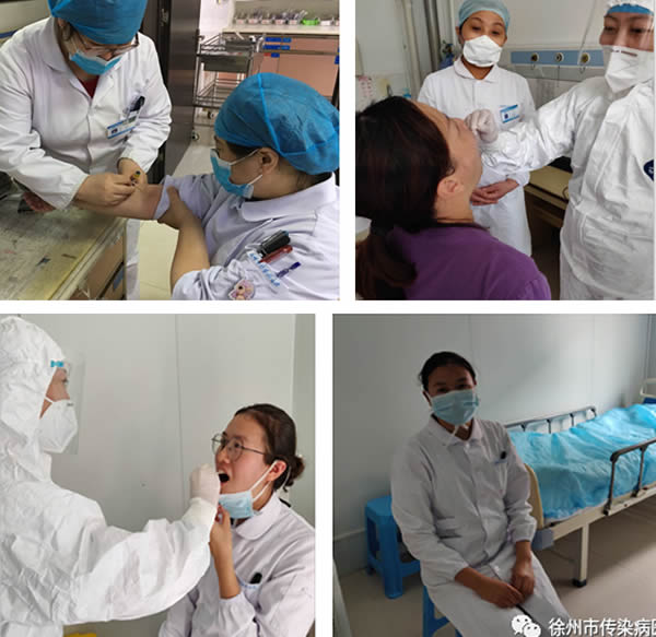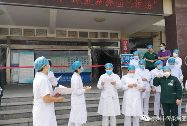 为进一步增强医务人员在秋冬季新冠肺炎防控中的自我防护意识,熟练掌握血源性职业暴露、呼吸道职业暴露及气溶胶导致眼黏膜职业暴露后的应急处理措施。2020年9月30日下午,徐州市传染病医院医院感染管理科联合医务科、护理部、预防保健科、发热门诊及内镜室等科室,组织医护技人员开展血源性职业暴露及呼吸道、气溶胶暴露应急演练。为了增强演练的感染力,各科室根据演练预案制订演练脚本,对有代表性的3个演练脚本(1.针刺伤导致血源性职业暴露;2.转运新冠肺炎患者时发生呼吸道职业暴露;3.为新冠肺炎患者进行纤支镜检查时发生疑似眼黏膜职业暴露),分别进行现场情景模拟与演练。