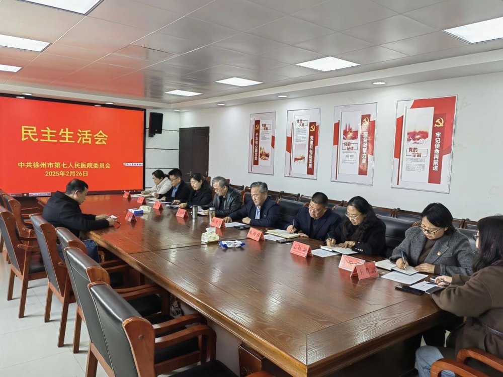 按照市卫生健康委的部署要求,2月26日下午,徐州市第七人民医院党委领导班子召开2024年度民主生活会。会议围绕 “深入学习贯彻习近平新时代中国特色社会主义思想,巩固深化党纪学习教育成果,综合发挥党的纪律教育约束、保障激励作用,为进一步全面深化改革、推进中国式现代化 提供坚强纪律保证”主题,紧扣班子和个人思想、作风和工作实际,认真查摆突出问题、深刻剖析原因并开展反面典型案例剖析,严肃开展批评和自我批评。市卫健委督导组领导、四级调研员成德坤同志到会指导。党委书记王为民主持会议,全体领导班子成员参加会议。