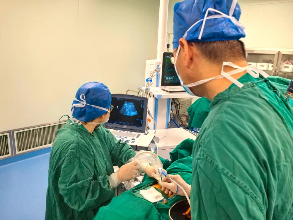 术中,在超声科主任王雪梅的彩超实时引导下,由鲁岩主任操“针”,将微波消融针精准穿刺至肿瘤部位,通过高频微波产生局部高温,使肿瘤组织瞬间凝固坏死。术程顺利,历时约30分钟,患者术中无特殊不适,术后恢复良好,次日即可下床活动。
