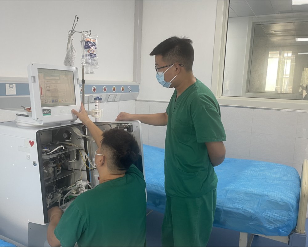 透析患者每周需要花费大量时间通过血液“过滤”清除体内毒素,在这个环节中,血透机运行的稳定、水处理水质的好坏至关重要,直接影响着病人的透析质量。作为北京地坛医院徐州医院(徐州七院)血液透析室的一名男技师,杨冬冬时时刻刻关注血透机的各项参数,把日常工作当成一种责任。