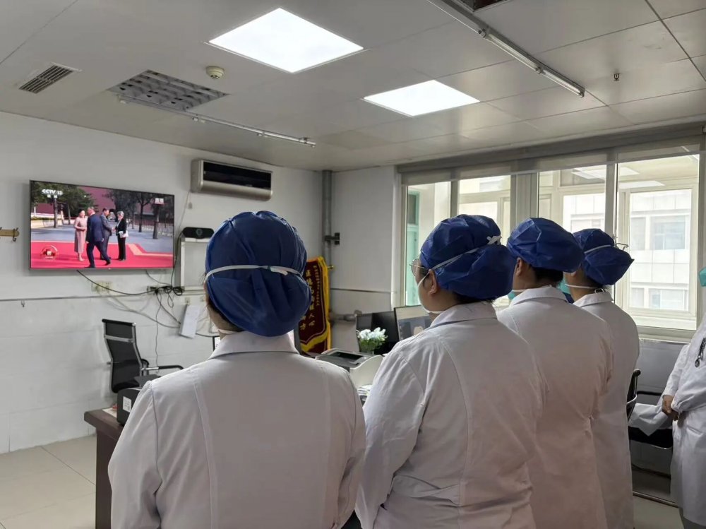 2025年9月3日上午,纪念中国人民抗日战争暨世界反法西斯战争胜利80周年大会在北京天安门广场隆重举行。北京地坛医院徐州医院(徐州七院)组织党员干部群众观看直播盛况。