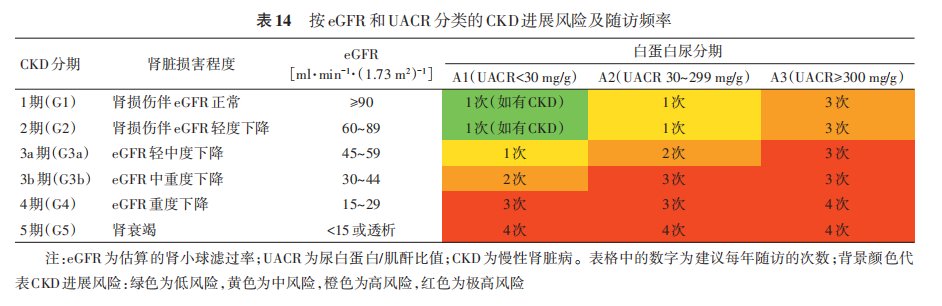 糖尿病肾脏病(DKD)病程不可逆,但通过规范管理可显著延缓进展。一般早期症状隐匿,随病情进展可出现蛋白尿、水肿、高血压等表现。2型糖尿病(T2DM)在确诊时即应进行DKD筛查,而1型糖尿病(T1DM)一般在确诊5年后进行DKD筛查,以后均应每年至少筛查1次。具体频率如下表:
