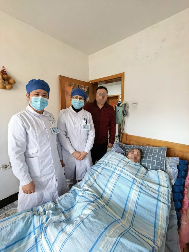 细节关怀:护理结束后,小王和小仇又帮老人测了血压,对家属进行了相关的健康宣教,教他们如何判断胃管是否通畅,并留下24小时咨询电话。临走时,仇护士还帮老人整理好被子,笑着说:“有需要随时叫我。”