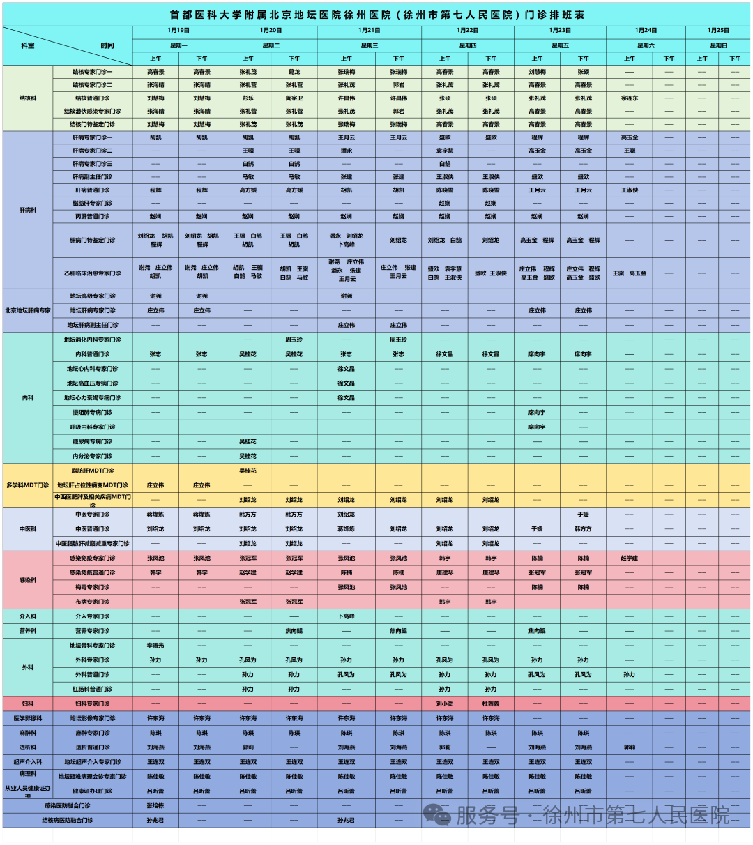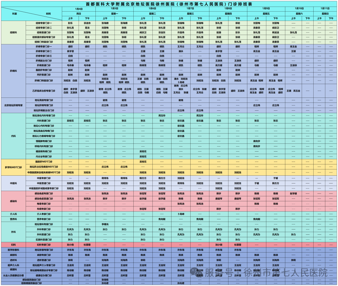 2026年1月1日-31日门诊排班