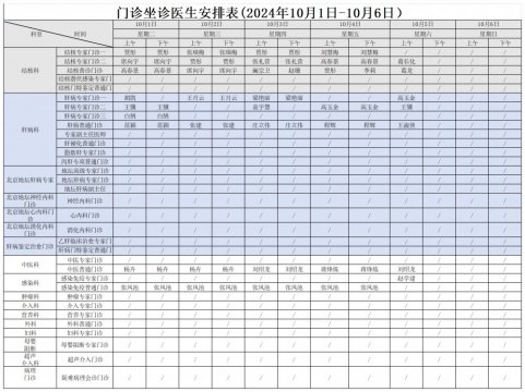 徐州市第七人民医院门诊坐诊信息一览表(10月1日-10月31日)