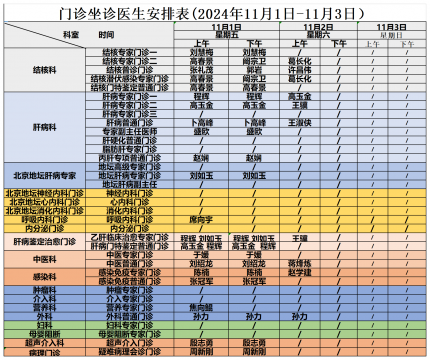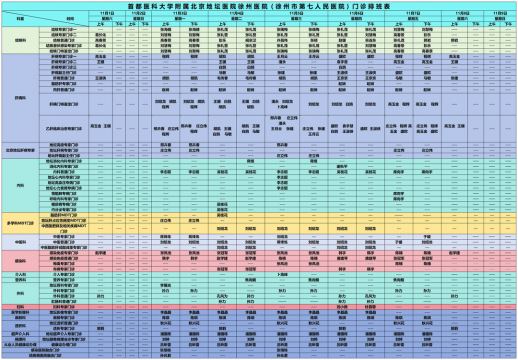 徐州市第七人民医院门诊坐诊信息一览表(11月1日-11月30日)