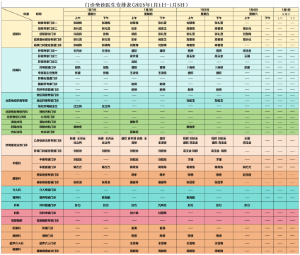 徐州市第七人民医院元旦放假安排及门诊坐诊信息一览表(1月1日-1月31日)