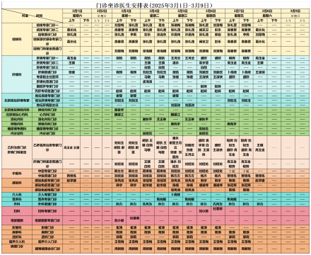 徐州市第七人民医院门诊坐诊信息一览表(3月1日-3月31日)