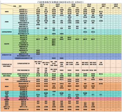 徐州市第七人民医院门诊坐诊信息一览表(4月1日-4月30日)