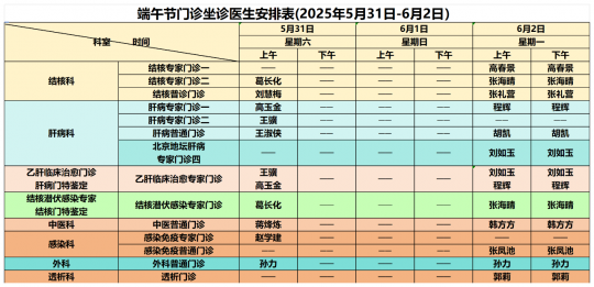 徐州市第七人民医院端午节放假安排及门诊坐诊信息一览表(6月1日-6月30日)