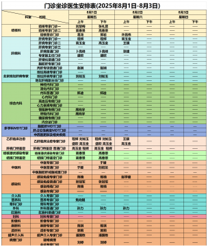 徐州市第七人民医院门诊坐诊信息一览表(8月1日-8月31日)
