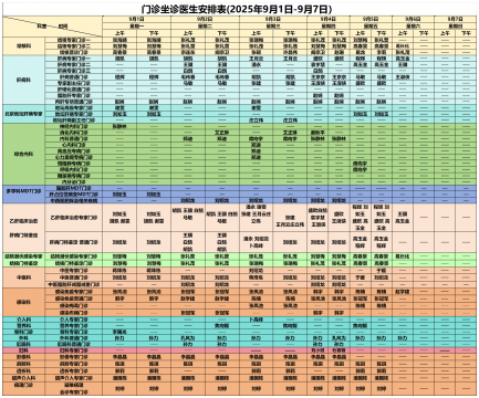 徐州市第七人民医院门诊坐诊信息一览表(9月1日-9月30日)