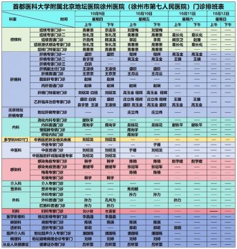 徐州市第七人民医院门诊坐诊信息一览表(10月9日-10月31日)