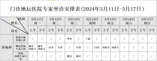 门诊坐诊医生安排表(2024年3月11日-3月17日)
